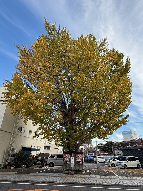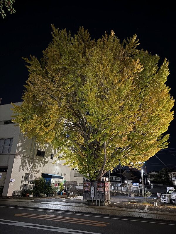 近所のイチョウ、昼と夜の部です。